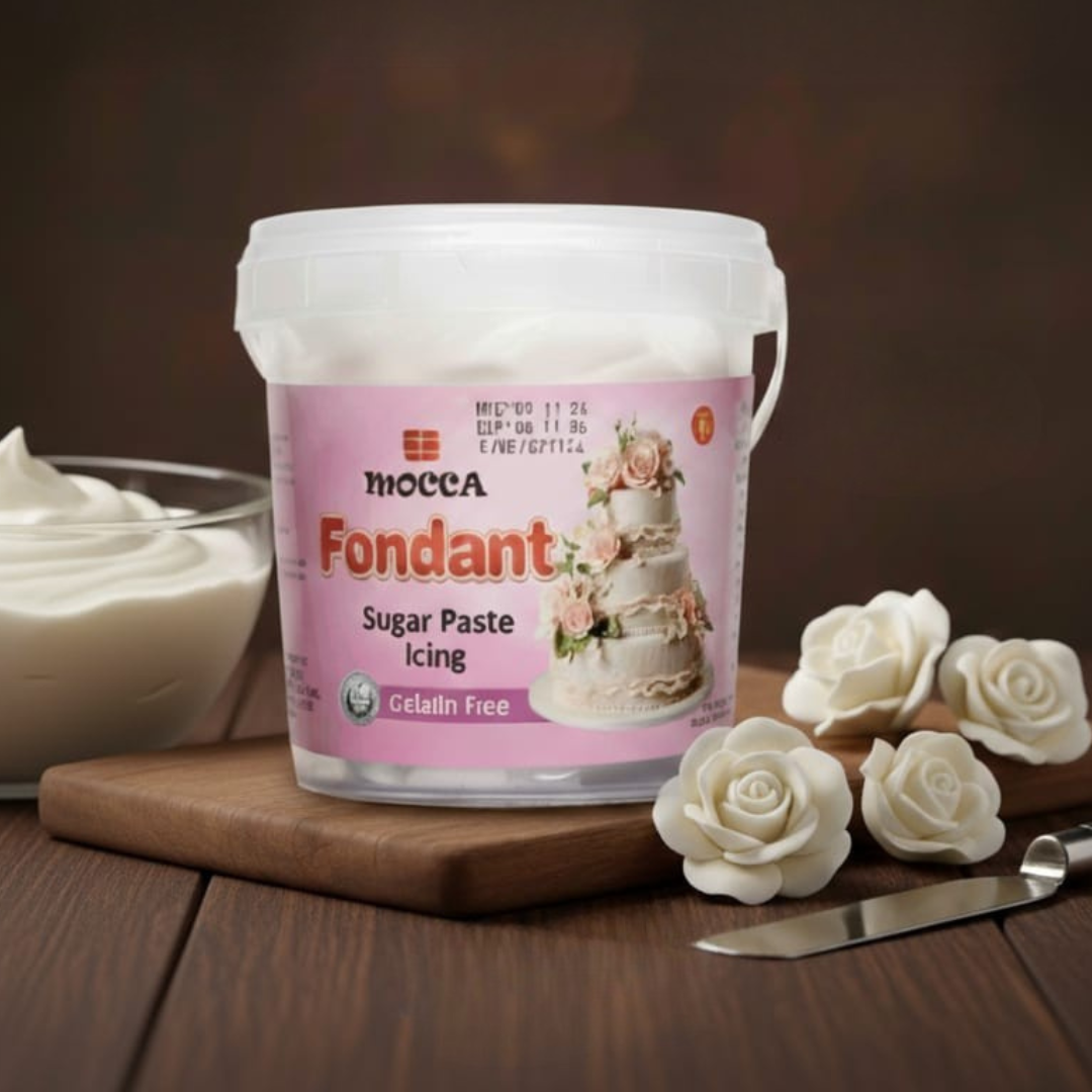 A must-have for every baker, Mocca Fondant White is the ultimate choice for classic cake decorating. Its pure, clean color makes it ideal for wedding cakes, elegant patterns, and simple yet refined designs. This smooth, pliable fondant is easy to work with, allowing for seamless cake coverings and delicate sculpting. Whether you’re crafting lace details, floral arrangements, or minimalist aesthetics, Mocca Fondant White provides a flawless base for endless creativity.